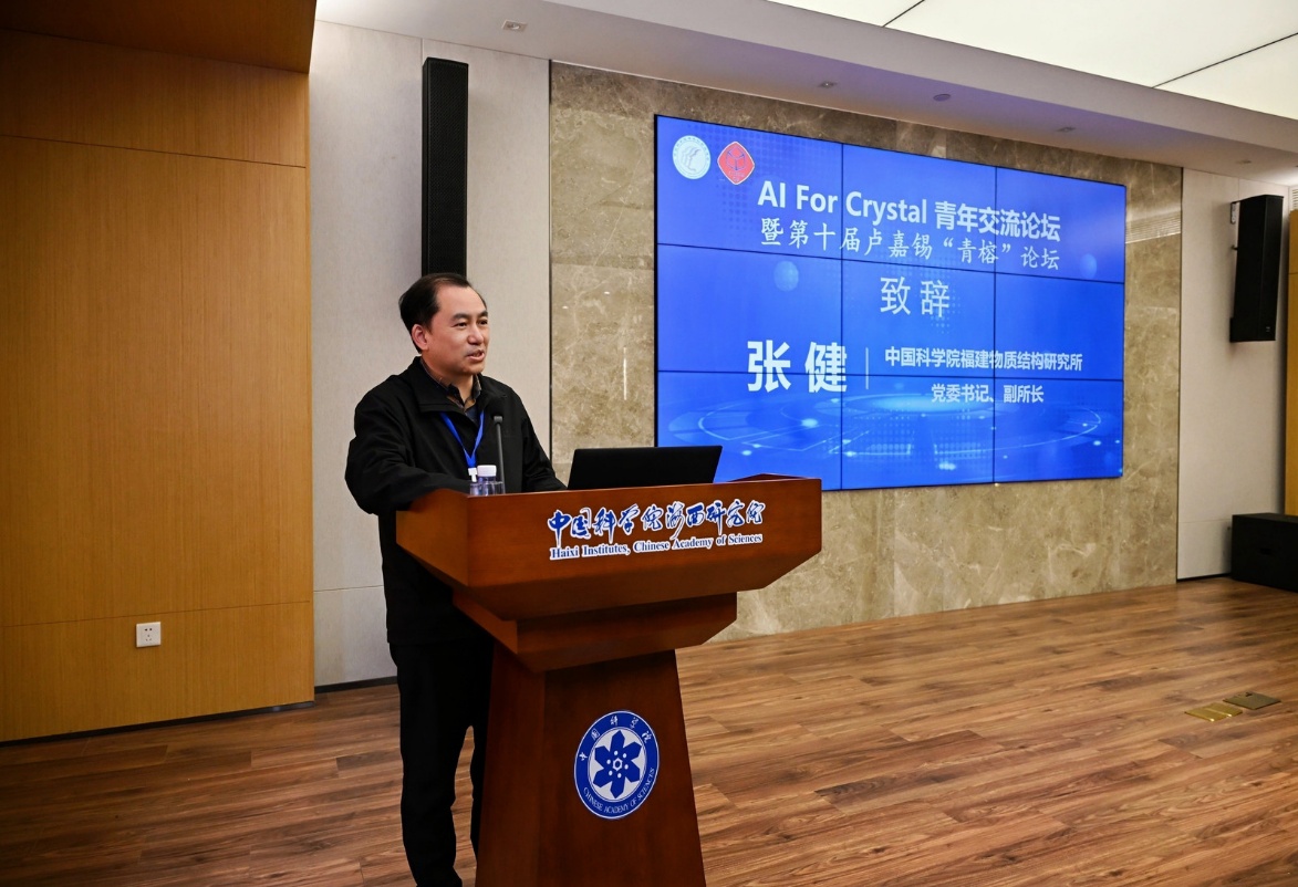 在致辭中,張健代表福建物構所向出席本次論壇的各位領導、專家及青年科技工作者表示熱烈歡迎和由衷的感謝。他簡要介紹了物構所的發(fā)展歷程,并指出高性能晶體材料的研發(fā)不僅是科研模式的革新,也是在關鍵材料領域?qū)崿F(xiàn)對我國自主可控、搶占未來國際科技制高點的有力響應。這類材料的成功研制,將為解決一系列“卡脖子”技術問題提供源頭性的材料支撐。他鼓勵青年科技工作者要敢于打破學科壁壘、大膽創(chuàng)新,充分利用AI技術實現(xiàn)數(shù)據(jù)與實驗的雙輪驅(qū)動,為我國材料科學與人工智能發(fā)展催生科研新范式。他預祝論壇收獲“交流融合·產(chǎn)學研用”的智慧種子,期待在不久的將來結(jié)出顛覆性的創(chuàng)新果實。