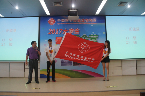 17日上午,夏令營開營儀式在物構(gòu)所化學樓四樓報告廳舉行,吳新濤院士和黨委書記黃藝東、副所長盧燦忠等所領(lǐng)導及部分導師代表出席了儀式。開營儀式由研究生部主任張婧主持。黃藝東為夏令營營員代表授旗,吳新濤院士親切寄語。黃藝東向同學們介紹了福建物構(gòu)所的歷史沿革、研究方向、發(fā)展現(xiàn)狀和研究生培養(yǎng)概況,歡迎大家將來能夠進入物構(gòu)所學習和深造,使大家對物構(gòu)所有了更詳細、更深刻的認識。在輕松的氣氛中,黃藝東還熱情地向同學們介紹了福州的風土文化,希望同學們在“有福之州”留下美好的體驗和回憶。盧燦忠主持了“第一作者論壇”。活動中,卓著、葉閏平、高美艷、張衡等四名物構(gòu)所優(yōu)秀畢業(yè)生與同學們分享了各自在科研學習和探索過程中的苦與樂,介紹了研究生的多彩生活,并回答了同學們提出的各種問題。