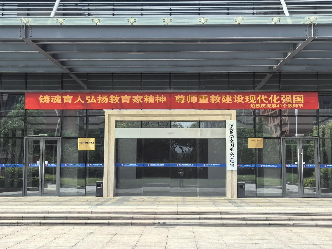 清晨的海西院園區(qū)洋溢著莊重而溫馨的氛圍。懸掛于嘉錫樓的紅色橫幅“鑄魂育人弘揚教育家精神,尊師重教建設現(xiàn)代化強國”格外醒目,彰顯出物構(gòu)所堅持科教融合、尊師重教的堅定理念。宣傳主題海報上,“秉初心立德樹人,育天下英才;續(xù)杏壇弘道鑄魂,擔強國大計”聯(lián)語鏗鏘有力,傳遞出研究所立德樹人、服務國家的使命擔當。