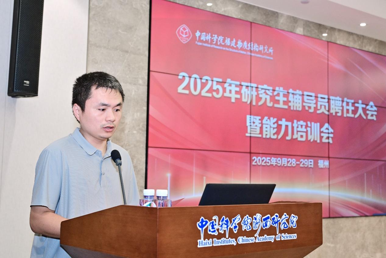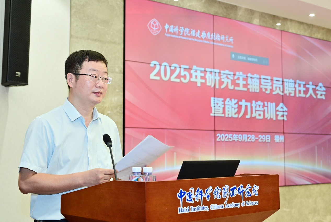 9月28日至29日,福建物構所在嘉錫樓舉辦2025年研究生輔導員聘任大會暨能力培訓會。中國科學院大學學工部部長王崗(線上),福建物構所黨委書記、副所長張健,所務委員吳少凡,閩江學院學工部部長楊曉,高校輔導員代表,全體新入職輔導員及教育處全體成員參加會議。會議由教育處處長張婧主持。