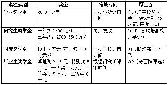 5.豐厚的獎(jiǎng)助體系:參照海西研究院研究生獎(jiǎng)助學(xué)金標(biāo)準(zhǔn),最高可享有與國(guó)科大學(xué)籍研究生同等助學(xué)金及學(xué)業(yè)獎(jiǎng)學(xué)金待遇,可參評(píng)國(guó)家獎(jiǎng)學(xué)金(聯(lián)培高校)和畢業(yè)生獎(jiǎng)學(xué)金(海西院)。